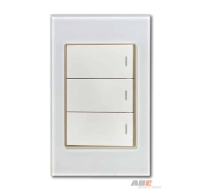 Công tắc ba Crystal trắng có bề mặt được làm bằng kính cường lực trắng cao cấp kết hợp với hạt phụ kiện công tắc điện – Ổ cắm điện màu trắng và vàng.