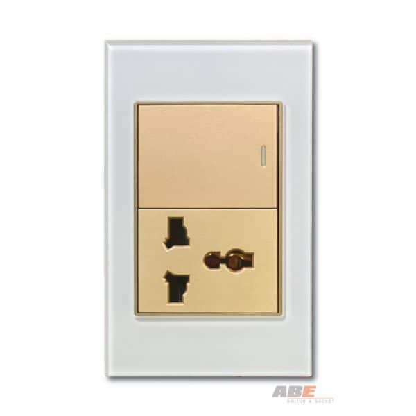 Công tắc đơn kèm Ổ cắm đa năng Kính trắng